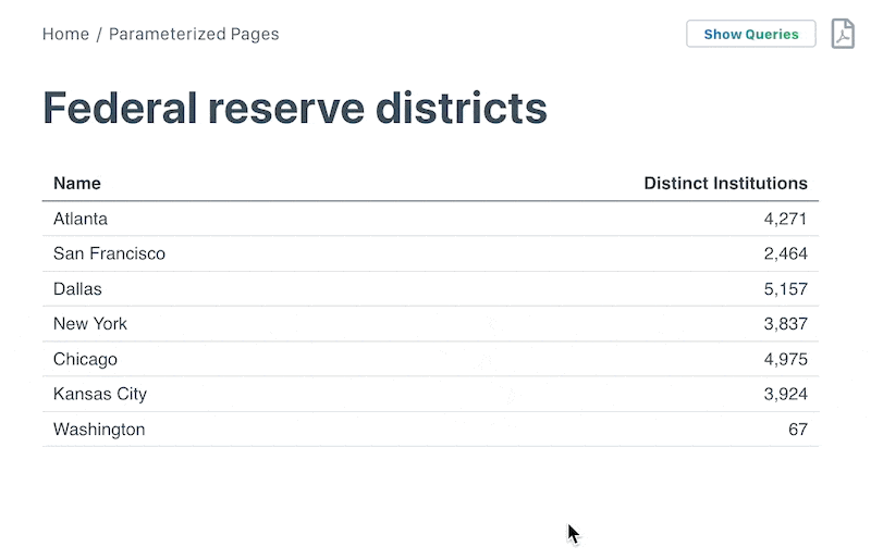 Use a DataTable component to display a richly formatted table of data from a query. Tables are powerful default choice for data display that allow high information density, and are easy to read.